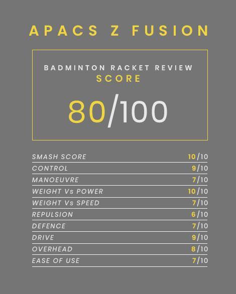The Apacs Z Fusion is fast racket and is developed to suit power based players who want more control or those seeking to produce instant power for smashes.